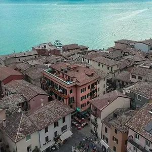 Einige Zimmer bieten auch einen Ausblick auf den See und umfassen einen Safe, einen Balkon und eine Kaffeemaschine. In den privaten Badezimmern gibt es ein Bidet, eine getrennte Toilette und eine Dusche sowie einen Haartrockner und Toilettenartikel. Es bietet Zimmer mit Blick auf den Gardasee.